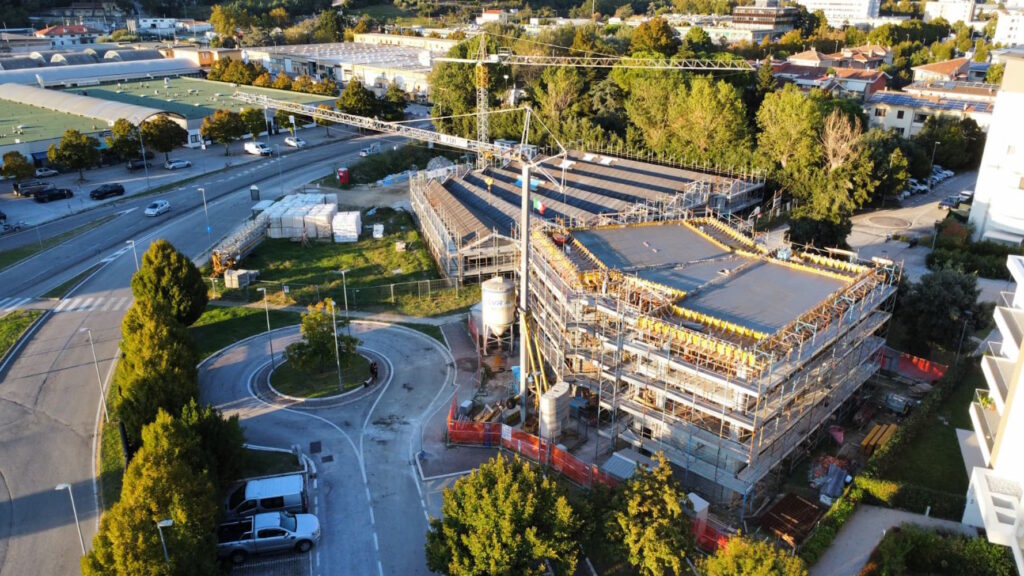Nel quartiere Torraccia di Pesaro (PU) su nuova palazzina residenziale, in fase di realizzazione, dal design minimalista e contemporaneo, in cui pieni e vuoti si alternano per caratterizzare i volumi e rendere l’intervento altamente riconoscibile grazie a forme architettoniche primarie ma di grande effetto.