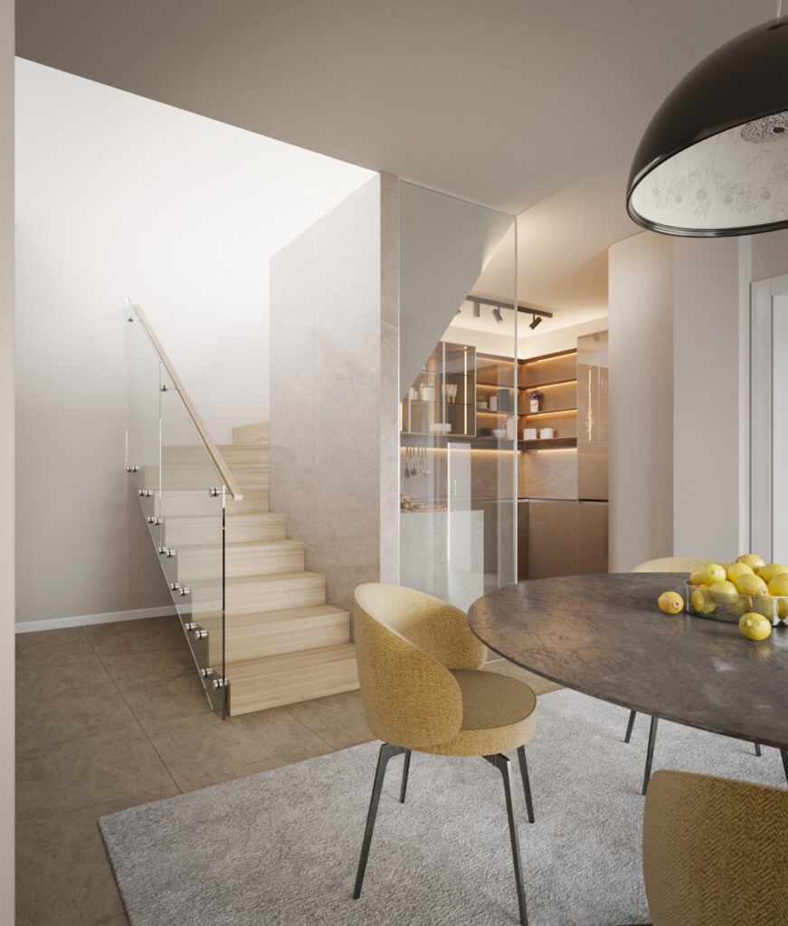 Ambienti confortevoli, dove la luce naturale raggiunge ogni angolo della casa, sfiorandola con eleganza. Il rapporto tra interno ed esterno è senza soluzione di continuità, grazie alle ampie vetrate che si aprono su giardini e terrazze.