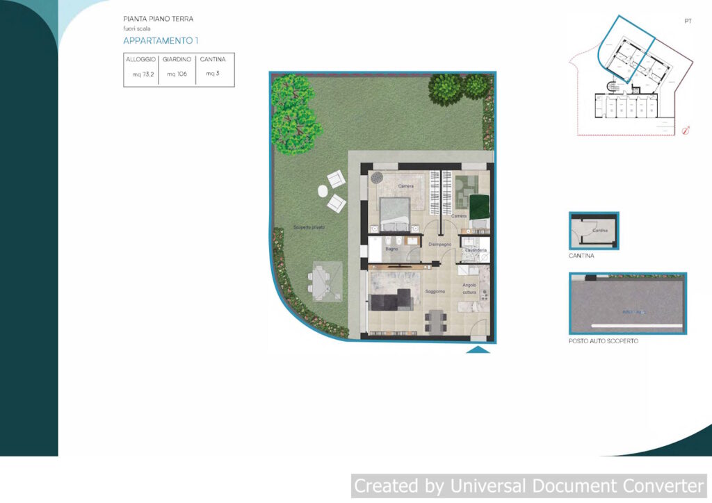 appartamento A1 di mq.73 + giardino mq.106 + cantina mq.3 + posto auto esterno