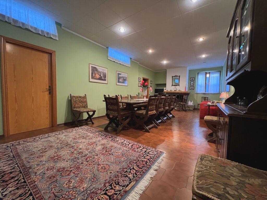 Al piano terra, l'ampio soggiorno con doppie porte finestre si apono su un privato scoperto pavimentato di circa 60 mq, perfetto per momenti di relax all'aperto. La cucina abitabile e la sala da pranzo offrono spazi ideali per cene in famiglia.