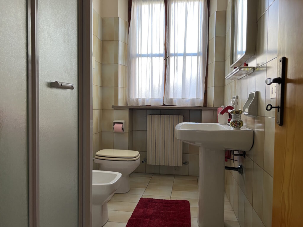 L'appartamento dispone di due camere matrimoniali, ognuna con accesso a balconi privati, e un bagno con doccia. Una scala interna conduce al piano seminterrato di totali 100 mq abitabile grazie all'altezza interna di 2,75 mt, dove si trova una spaziosa taverna con camino, un cucinotto, una terza camera matrimoniale e un secondo bagno con doccia. La lavanderia e la cantina completano questo livello, offrendo ulteriore spazio e funzionalità.
